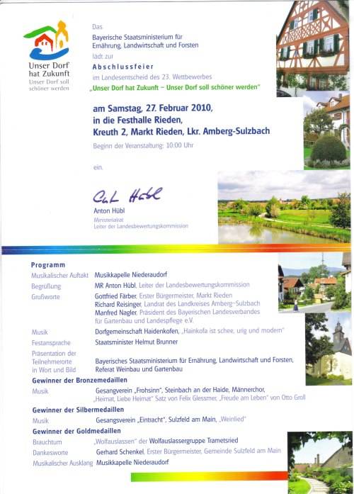 Einladung an die Haidenkofener Dorfgemeinschaft vom Bayerischen Staatsministerium