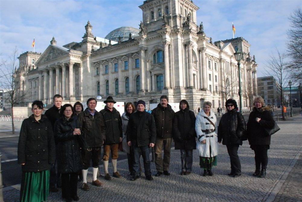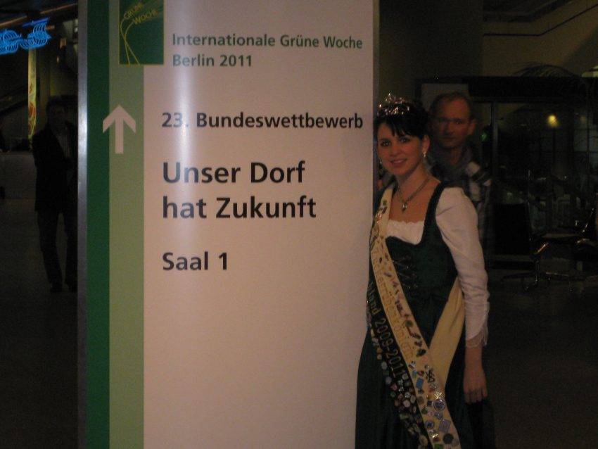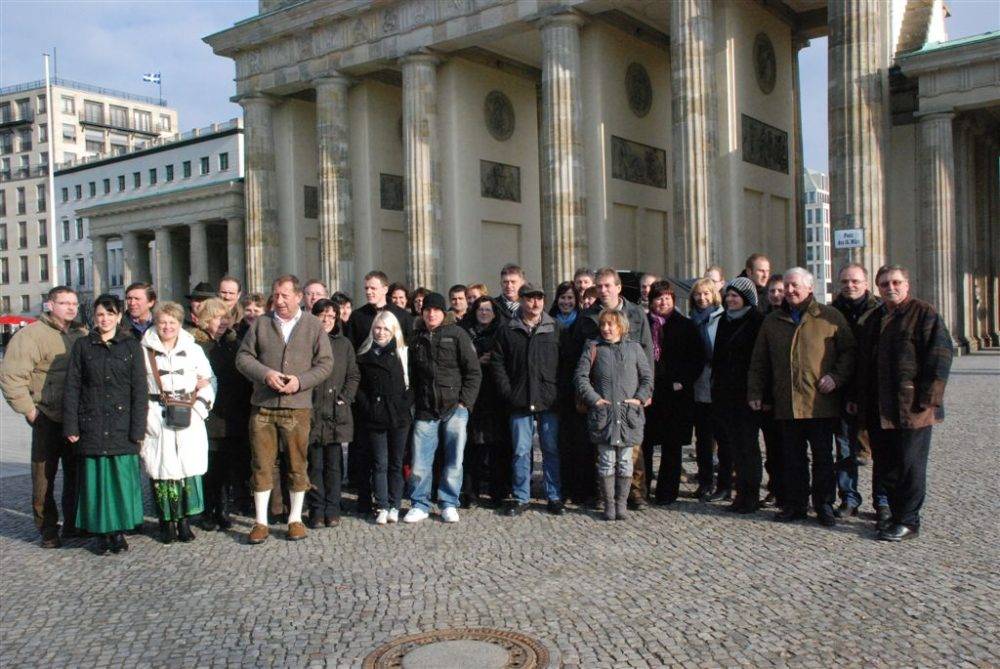 Dieses Wochenende traten die Haidenkofener endlich die lang ersehnte Busreise nach Berlin an, um den Lohn für die Bemühungen und den Einsatz für ihr Dorf in Empfang zu nehmen. Stephan Bayerschmidt hatte alles perfekt organisiert und so traf man sich am 28.01.2011 morgens um vier Uhr vor dem Vereinsheim, um gemeinsam die Goldmedaille nach Haidenkofen zu holen. Nach einem kurzen Zwischenstopp am Brandenburger Tor und Reichstag kam man pünktlich am Internationalen Congress Center Berlin (ICC) an. Hier hatten alle Mitreisenden noch genügend Zeit sich umzuziehen, um wieder einheitlich in Dirndl und Lederhose aufzutreten.