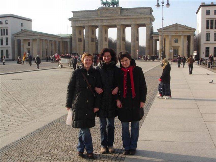 am Brandenburger Tor drei Mädels unterwegs im Osten der Stadt vor dem Reichstag so ist's bequemer