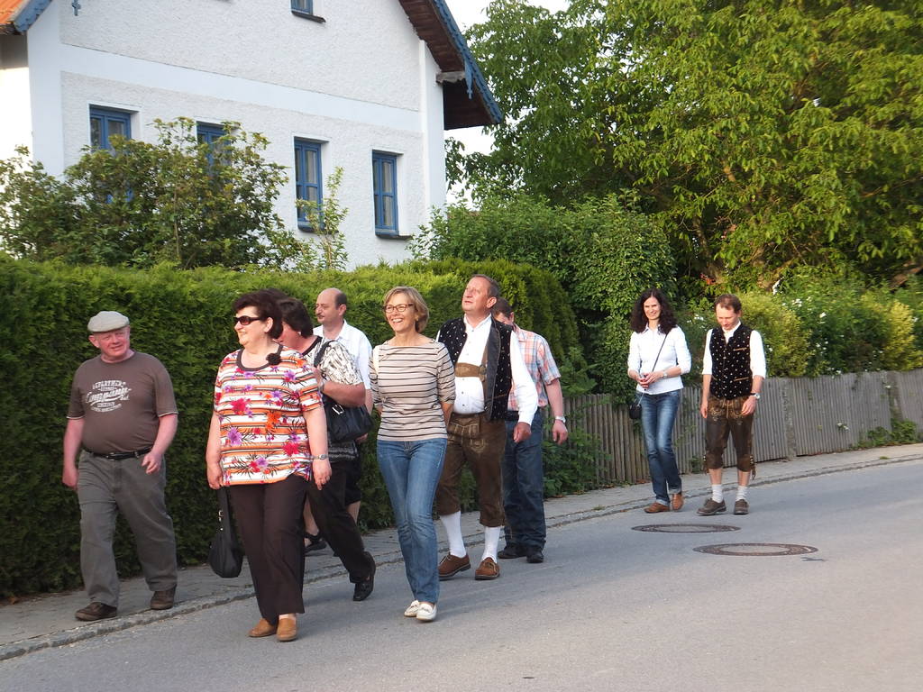 Der Bürgermeister stellte in seiner Begrüßungsrede am Samstag Parallelen zwischen den beiden Dörfern her und überreichte den Gästen zur Erinnerung einen Bierkrug der Gemeinde Wallersdorf. Danach wurden die Haidenkofener zu einer Dorfbesichtigung eingeladen. Franz Köppl erzählte viel Wissenswertes und Interessantes über seinen Ort. Stolz berichtete er, dass Haidenkofen sogar ein eigenes Gemeindewappen aufzuweisen habe. Ein gut erhaltenes Feldkreuz wurde ebenso hergezeigt, wie die schön restaurierten Häuser und  gepflegten Bauerngärten.