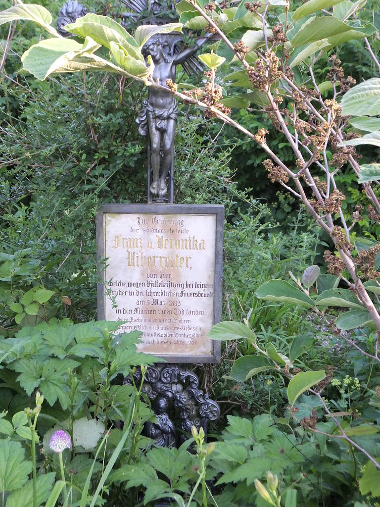 Eine Gedenktafel in der Ortsmitte erinnert an die furchtbare Brandkatastrophe von 1883 bei der vier Menschen, über 50 Stück Vieh, eine wertvolle Kapelle und acht Anwesen dem Feuer zum Opfer fielen. Die 1885 erbaute Nachfolgekirche wurde wieder dem hl. Achatius geweiht und ist momentan wegen Renovierungsarbeiten nicht zugänglich. (Der hl. Achatius war ein römischer Offizier und  einer der vierzehn Nothelfer).