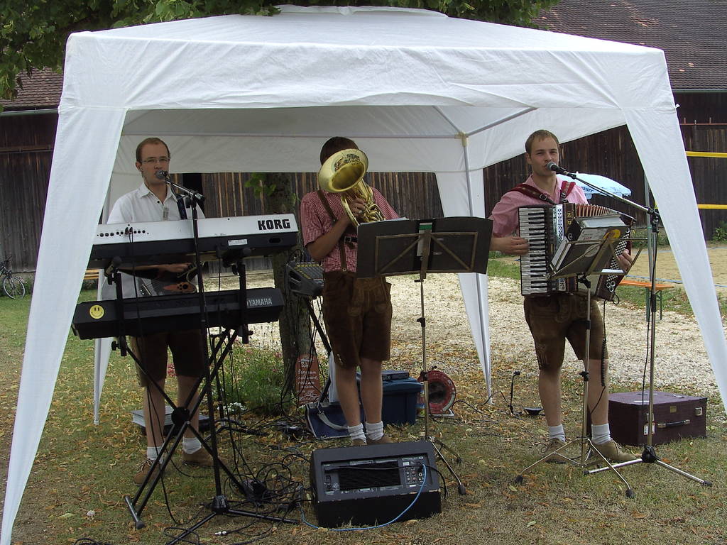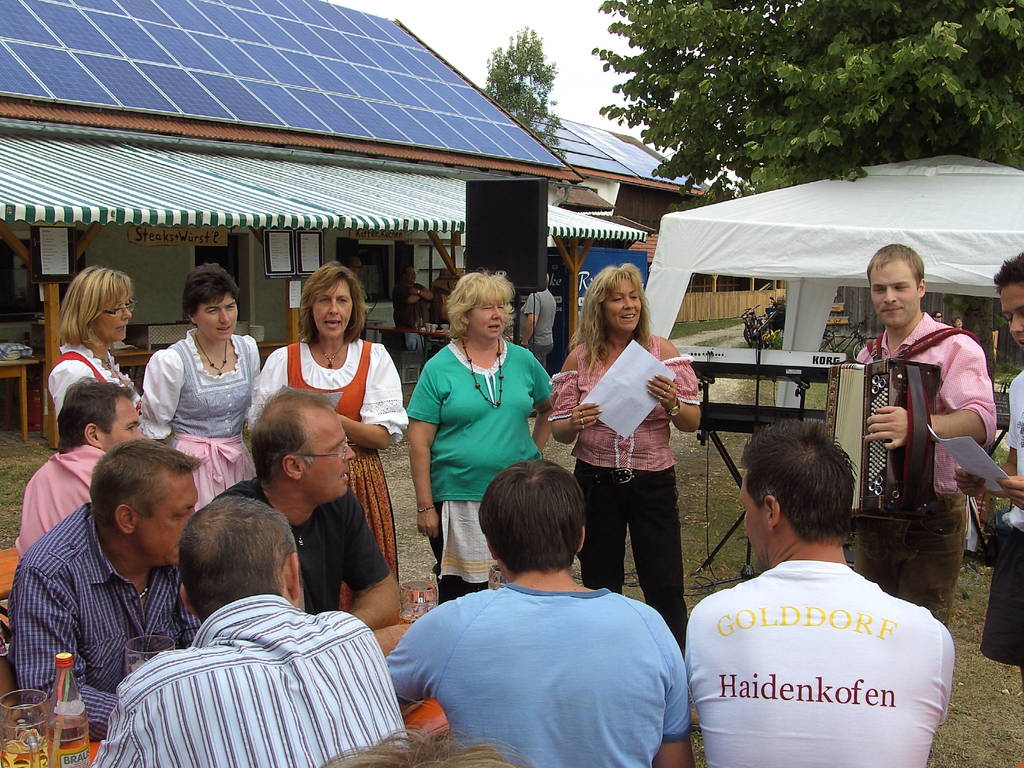 Viele Gäste aus Nah und Fern saßen am Dorfplatz zusammen und ließen sich die Schmankerl vom Grill schmecken. Entgegen anders lautenden Meldungen gab es keine Goldfische, sondern gegrillte Forellen. Ein Genuss waren diese Steckerlfische, die Karl Spitzer wie jedes Jahr mit seiner geheimnisvollen Mischung würzte, und so wurden fast 300 Stück davon verkauft. Für gute Stimmung mit zünftiger bayerischer Musik sorgten die "Denglinger Buam", die immer gerne in Haidenkofen gesehen und gehört werden.