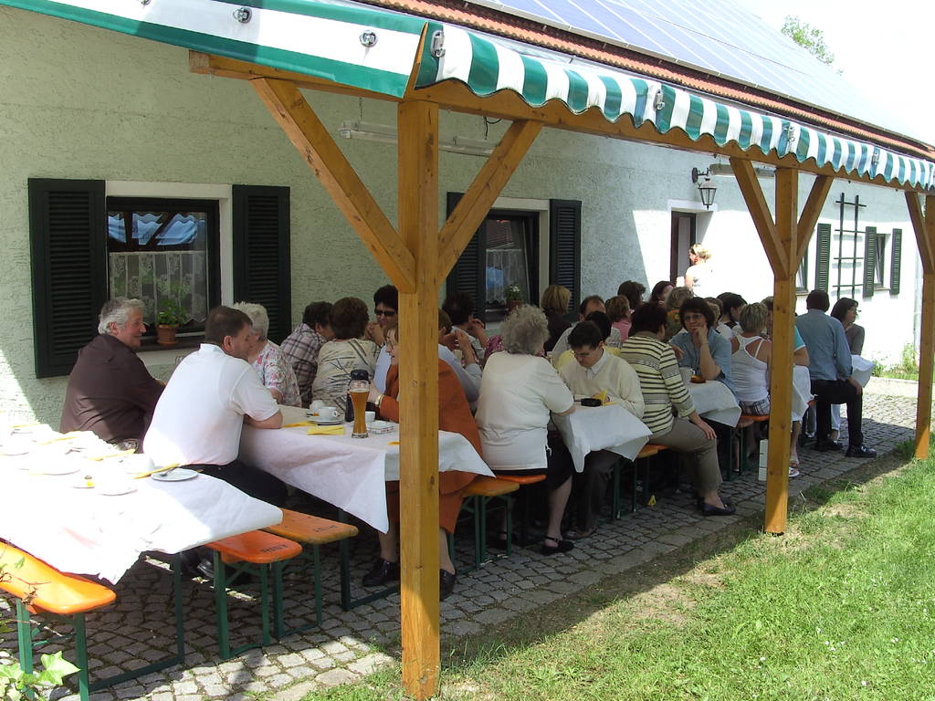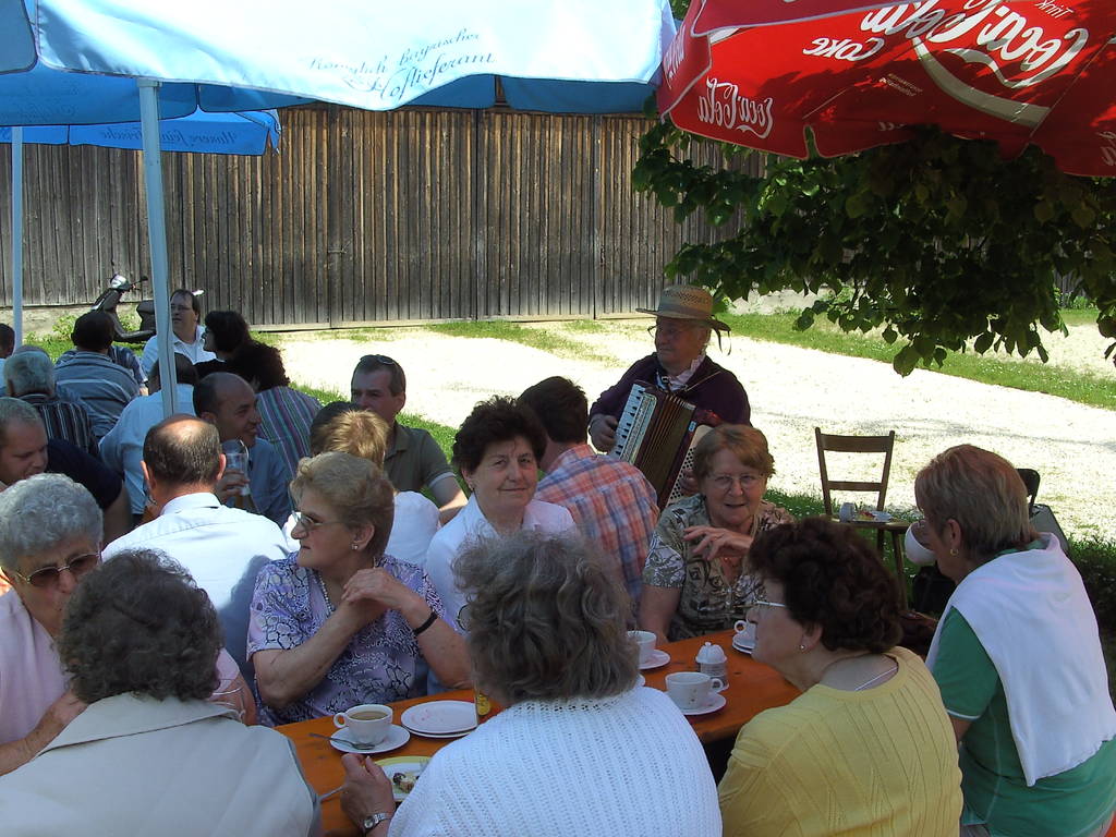 Danach saßen die Dorfbewohner und Gäste bei strahlendem Sonnenschein noch lange auf dem Dorfplatz zusammen.