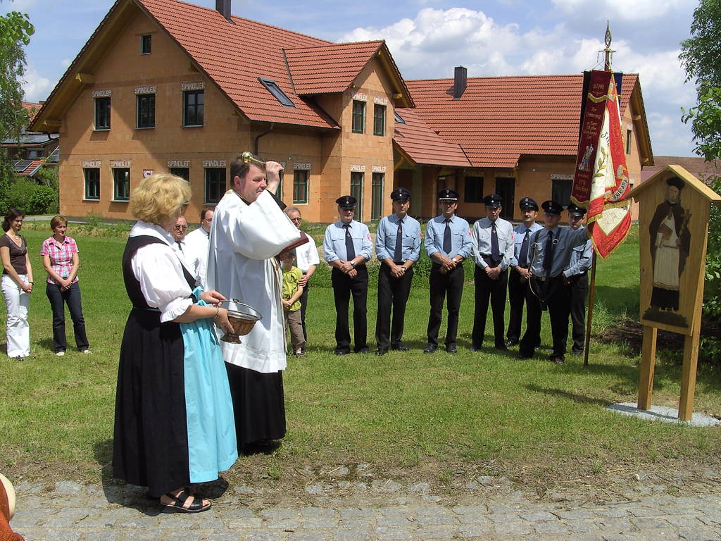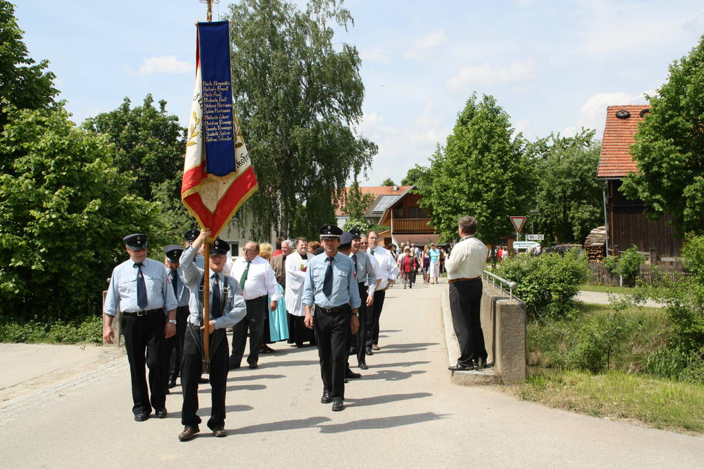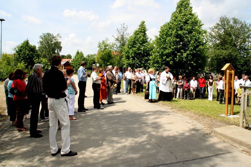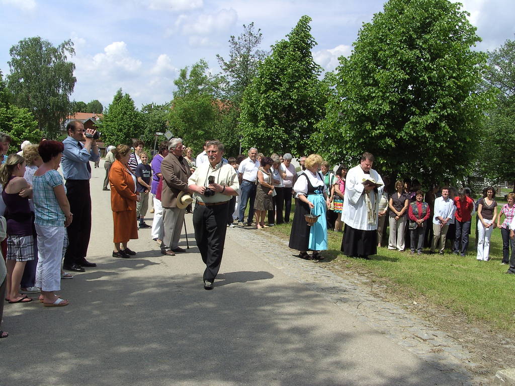 Im Anschluss an die diesjährige Maiandacht am Pfingstmontag zogen die ca. 100 Kirchgänger gemeinsam zur Laberbrücke, wo Pfarrer Erwin Gietl die Segnung des Brückenheiligen vornahm.