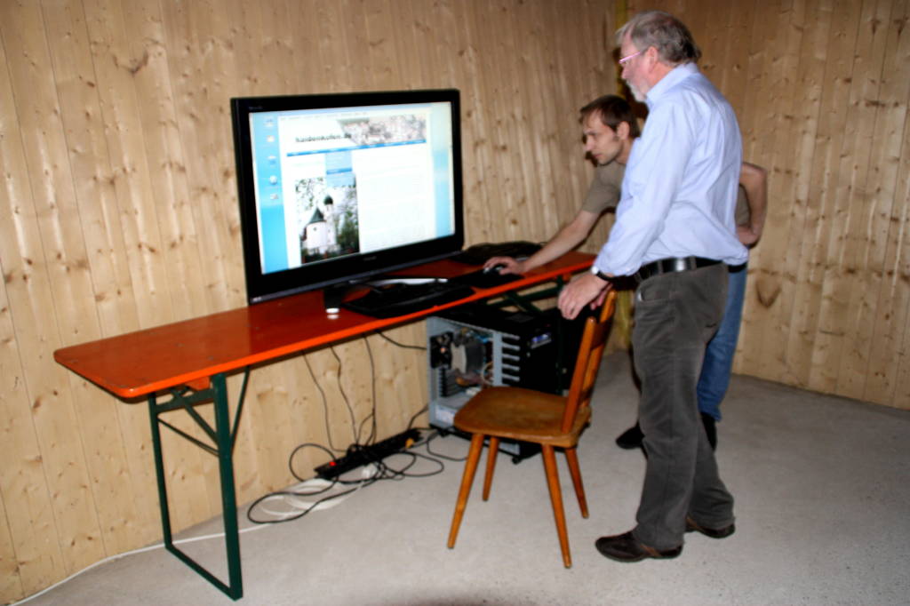 In einer Scheune konnte die Kommission alle Projekte und Veranstaltungen der letzten Jahre auf mehreren Bildtafeln nochmals Revue passieren lassen. Zeitgleich präsentierte Matthias Wild der Jury die Haidenkofen - Homepage.