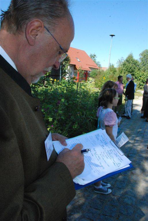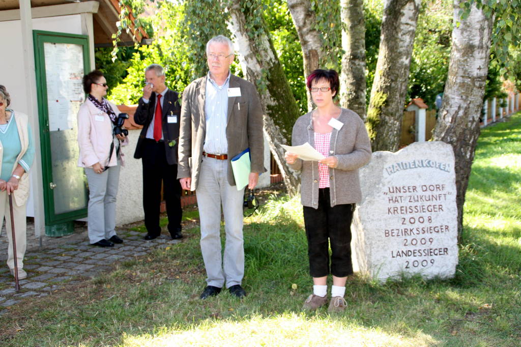 Nach zwei Stunden war der Rundgang durch das Dorf beendet und auch Hermann Gerl, der mit Vertretern von Gartenbau und Naturschutz die Gemarkung Haidenkofen befuhr, war wieder am Dorfplatz angekommen. Sichtlich begeistert waren die zwei Jurymitglieder von den 20 ausgewiesenen Biotopen und dem vorbildlichen Landschafts- und Gewässerschutz.