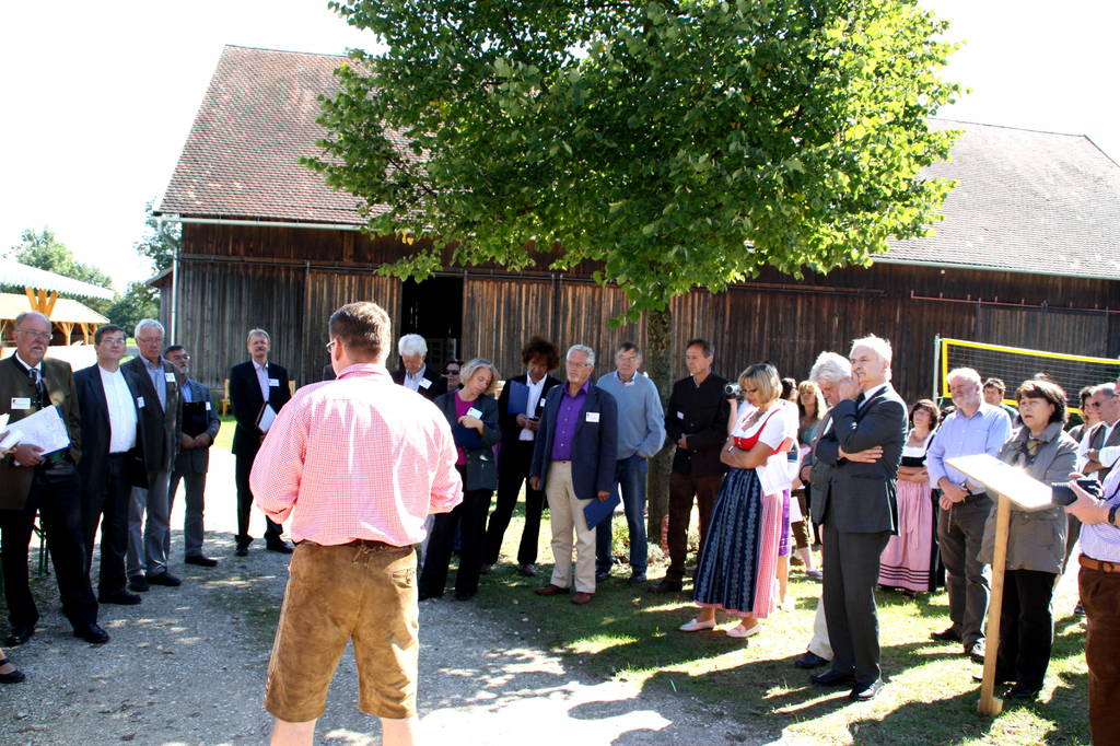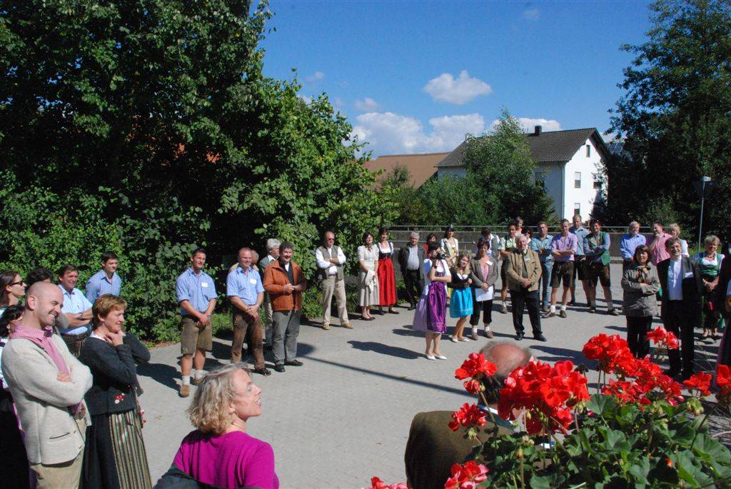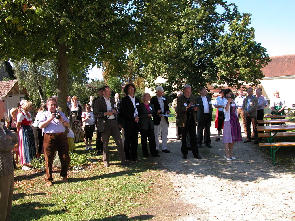 Bürgermeister Erwin Rist konnte in seiner offiziellen Ansprache Landrat Herbert Mirbeth, Landtagsabgeordnete Sylvia Stierstorfer, Kreisrat Johann Jeserer, und zahlreiche Vertreter aus Ämtern sowie Garten- und Denkmalpflege begrüßen. In Urlaubsvertretung des Vorsitzenden der Landeskommission Anton Hübl kam Anton Magerl, Präsident der Bayrischen Landesanstalt für Weinbau und Gartenbau. Neben zweitem Bürgermeister Robert Spindler hatten sich außerdem zwei Gemeinderäte aus Sünching eingefunden.