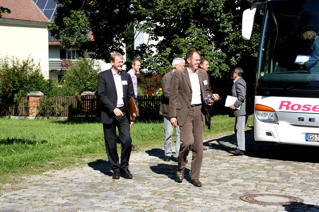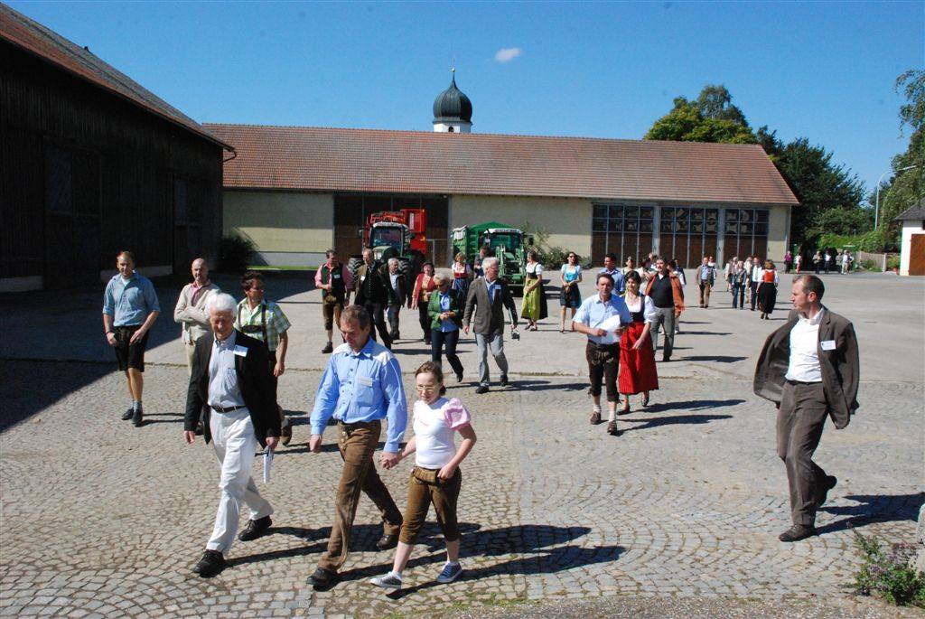 Pünktlich um 11 Uhr fuhr die Kommission auf dem Dorfplatz vor. Hermann Gerl, zuständig für den Bereich "Dorf in der Landschaft", war bereits in Sünching in den Bus gestiegen, um der Jury bei einem kleinen Umweg über die Höhen des Scharings das Dorf bzw. den Grüngürtel um Haidenkofen zu zeigen. Mit diesen ersten Eindrücken stieg eine sichtlich gut gelaunte Kommission rund um den Vorsitzenden Michael Pelzer, Bürgermeister der Gemeinde Weyarn in Oberbayern, aus.