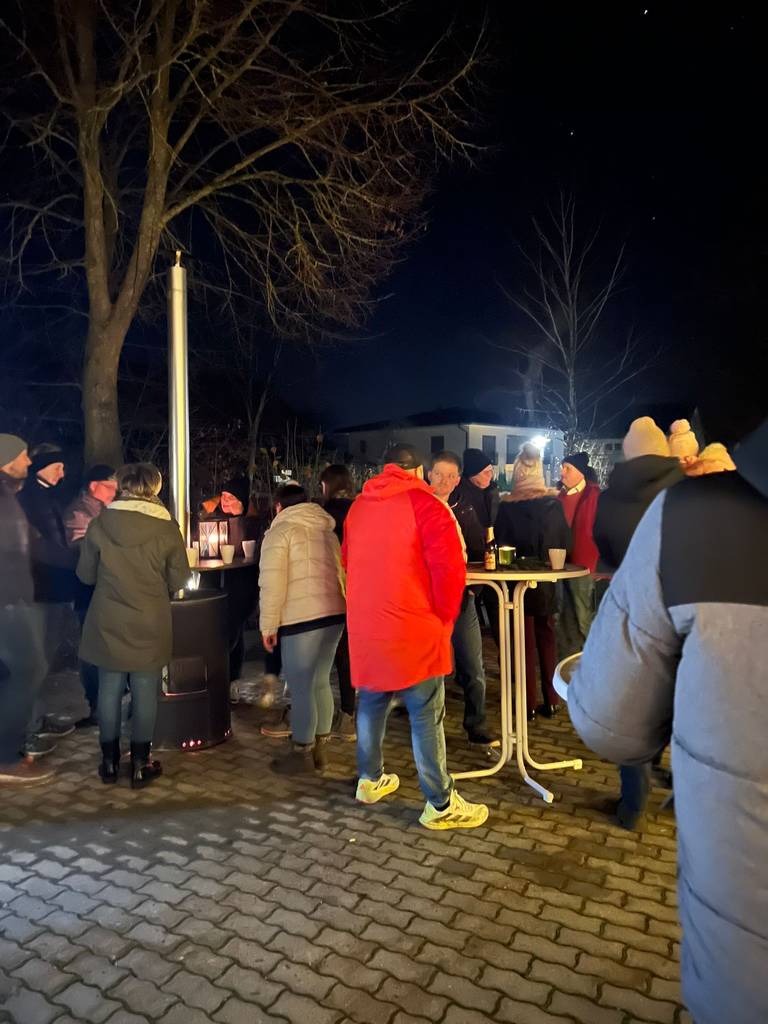 Die Vorstandschaft des Frauentreffs war am Vortag fleißig gewesen und hatte überall schön dekoriert. Beheizte Stehtische, eine Feuerschale, in dem das brennende Holz vor sich hin knisterte, verbreiteten eine angenehme Atmosphäre.
