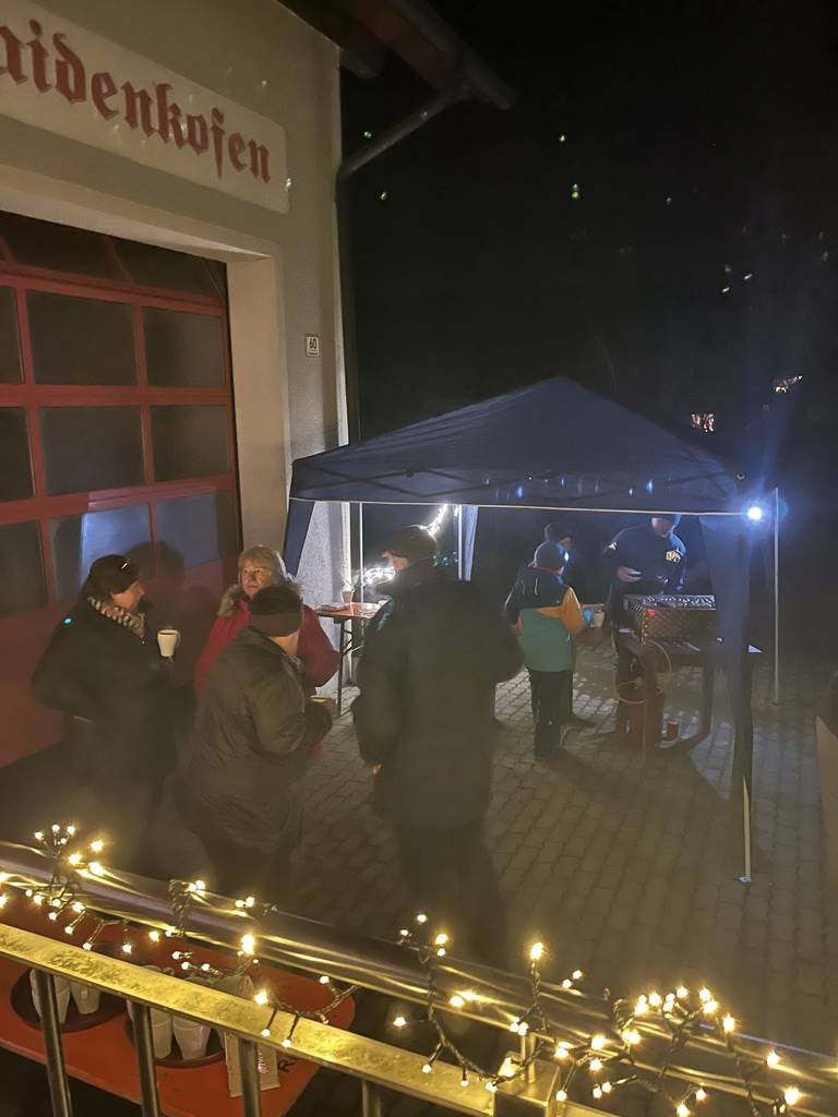Der Eingangsbereich des Feuerwehrhauses war mit einem Christbaum geschmückt, dessen Lichterschein schon von Weitem erkennbar war. Zusätzlich erhellten Lichterketten den Vorplatz.