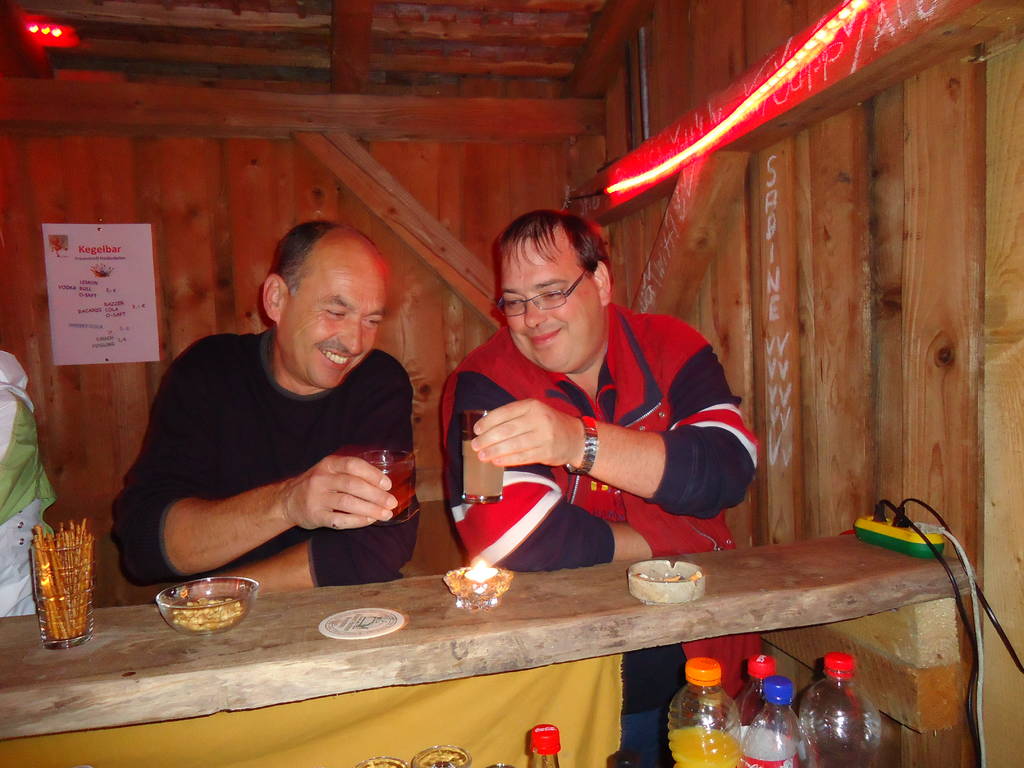 Abends hatte auch heuer wieder der Frauentreff zur zünftigen "Kegelbar" eingeladen. Dort fanden sich auch die Dorfbewohner nach getaner Arbeit ein, um feucht fröhlich den Tag ausklingen zu lassen.