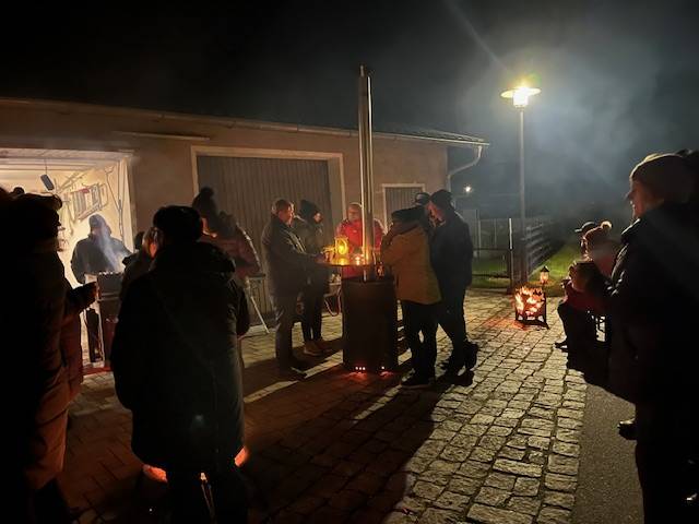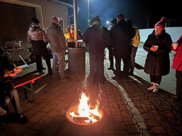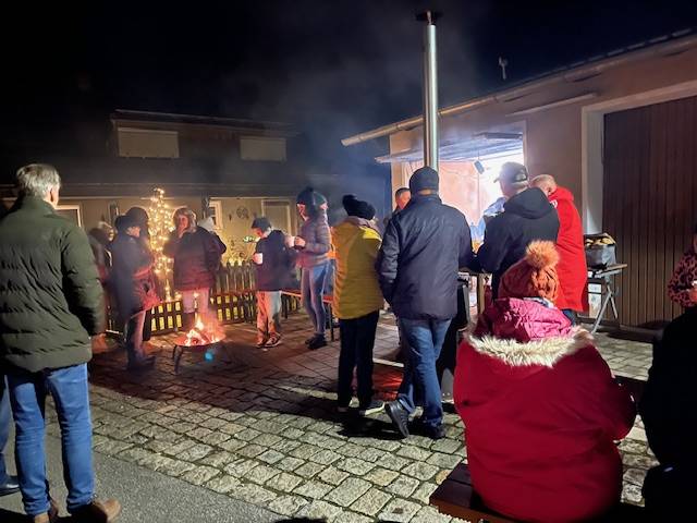 Im Anschluss folgte der gesellige Teil des Abends. Bei Glühwein, Punsch und weihnachtlichem Gebäck kamen die Dorfbewohner miteinander ins Gespräch. Schwiegersohn Daniel Pletz sorgte am Grill für frisch zubereitete Bratwurstsemmeln, die bei den Gästen großen Anklang fanden.